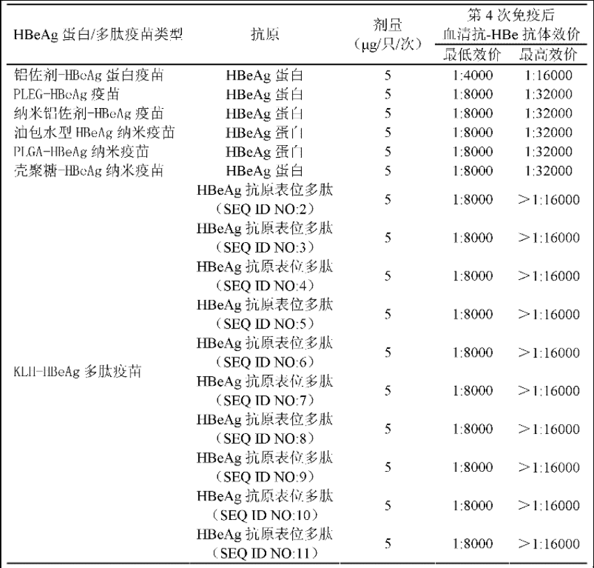 以HBeAg蛋白和/或HBeAg抗原表位多肽作为免疫原的疫苗