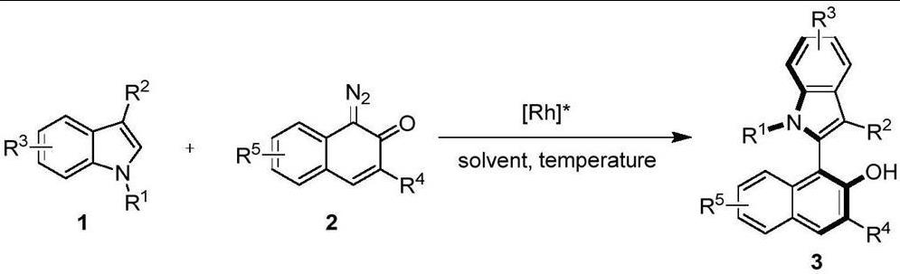 使用手性铑催化合成碳-碳轴手性吲哚-萘酚类联芳基化合物的方法
