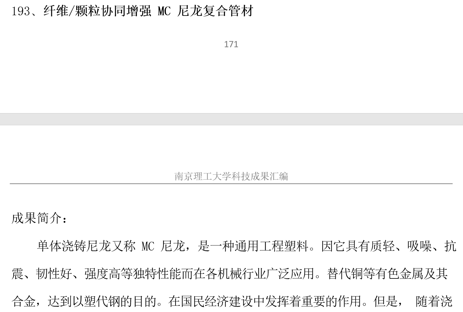 纤维/颗粒协同增强 MC 尼龙复合管材