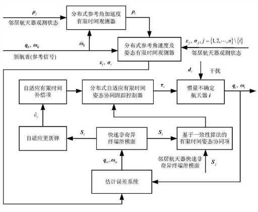 分布式航天器编队自适应有限时间姿态协同跟踪控制方法