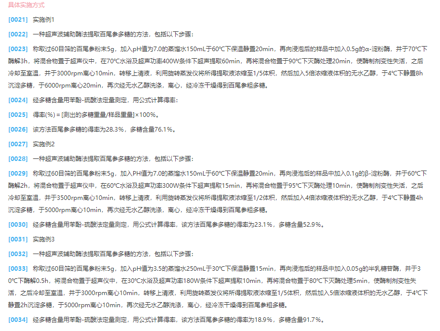 超声波辅助酶法提取的百尾参多糖