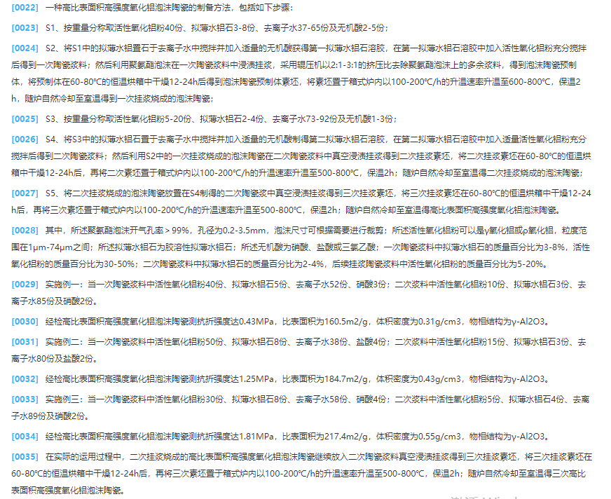 高比表面积高强度氧化铝泡沫陶瓷的制备方法