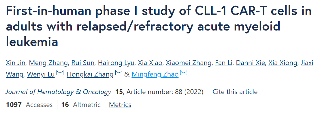 CLL-1 CAR-T细胞疗法用于成人急性髓系白血病