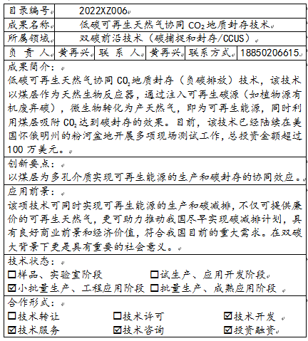 低碳可再生天然气协同CO2地质封存技术