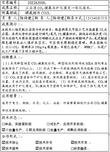工业源CO2捕集与矿化固定一体化技术