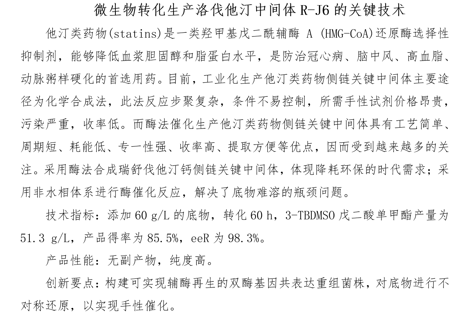微生物转化生产洛伐他汀中间体R-J6的关键技术