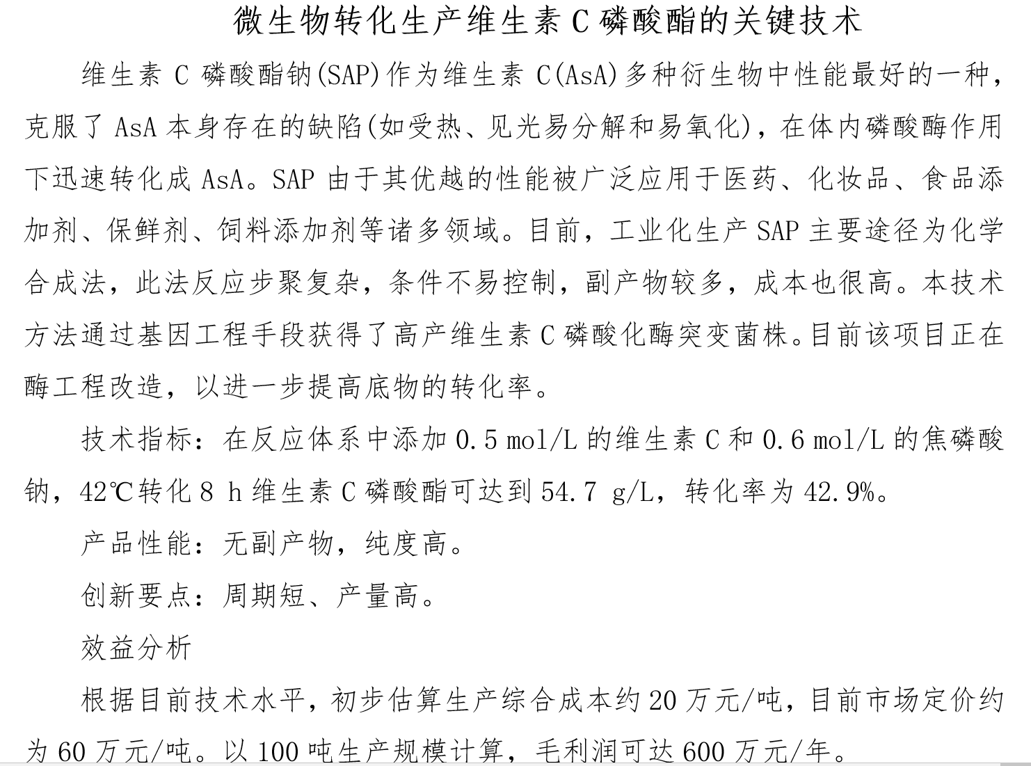 微生物转化生产维生素C磷酸酯的关键技术