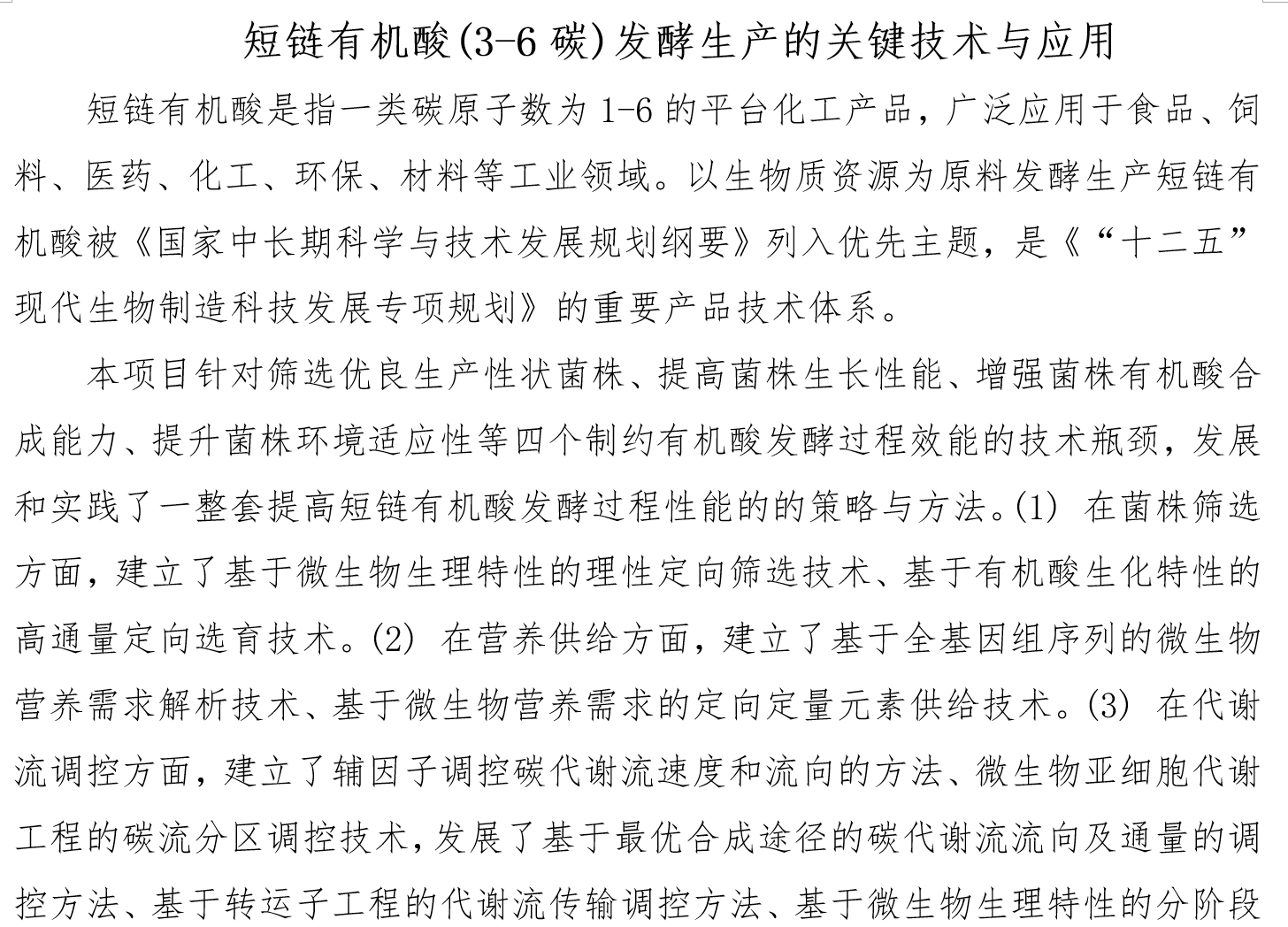 短链有机酸(3-6碳)发酵生产的关键技术与应用