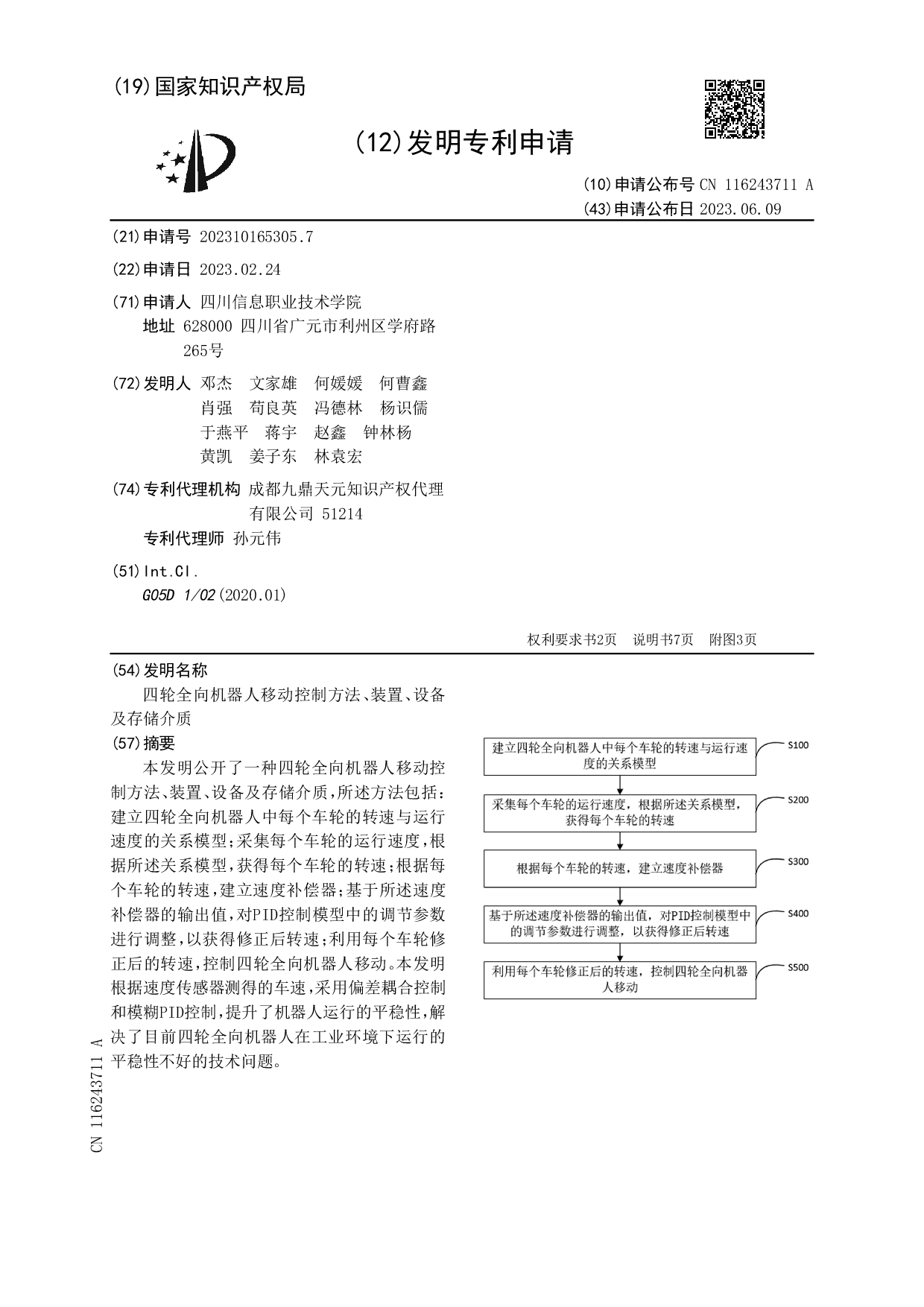 四轮全向机器人移动控制方法、装置、设备及存储介质