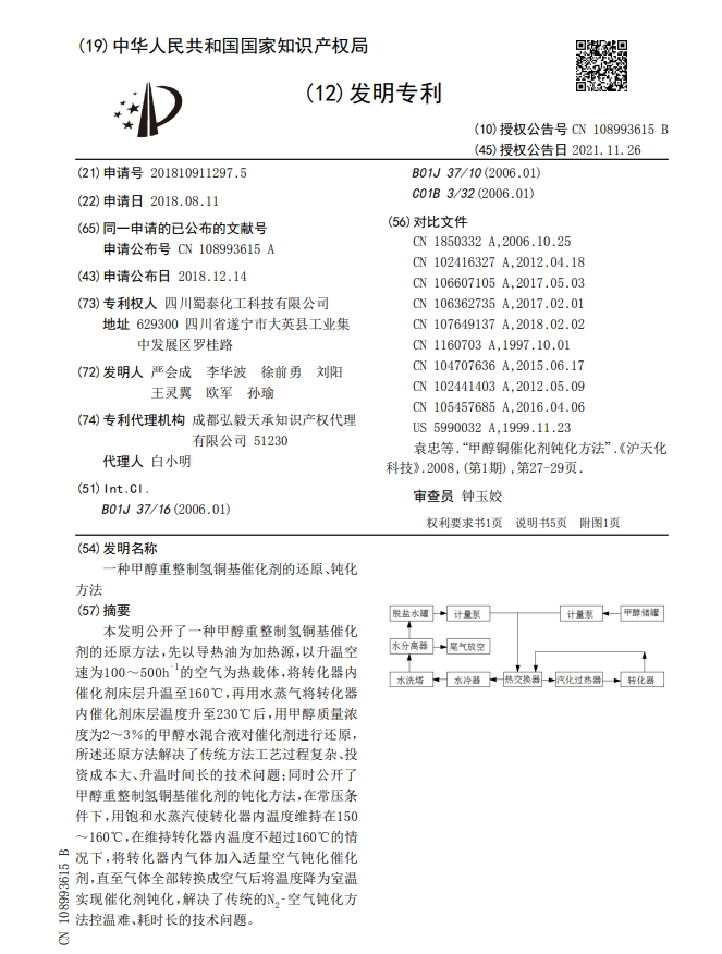 一种甲醇重整制氢铜基催化剂的还原、钝化方法