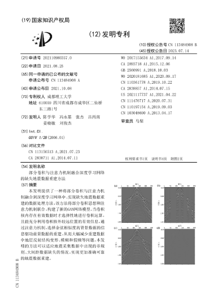部分卷积与注意力机制融合深度学习网络的缺失地震数据重建方法