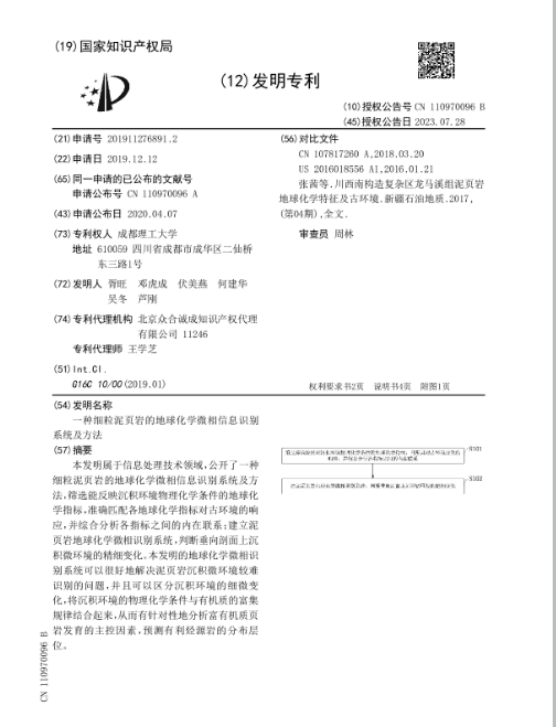 一种细粒泥页岩的地球化学微相信息识别系统及方法