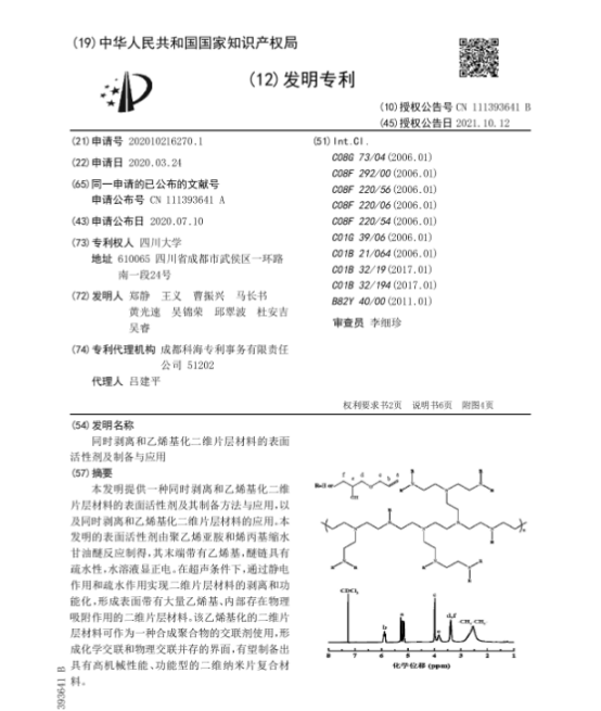 同时剥离和乙烯基化二维片层材料的表面活性剂及制备与应用