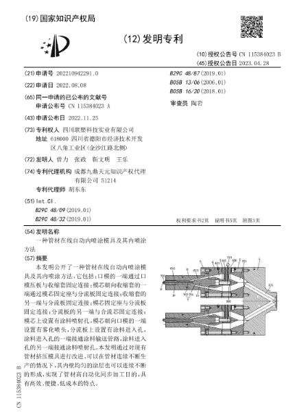一种管材在线自动内喷涂模具及其内喷涂方法