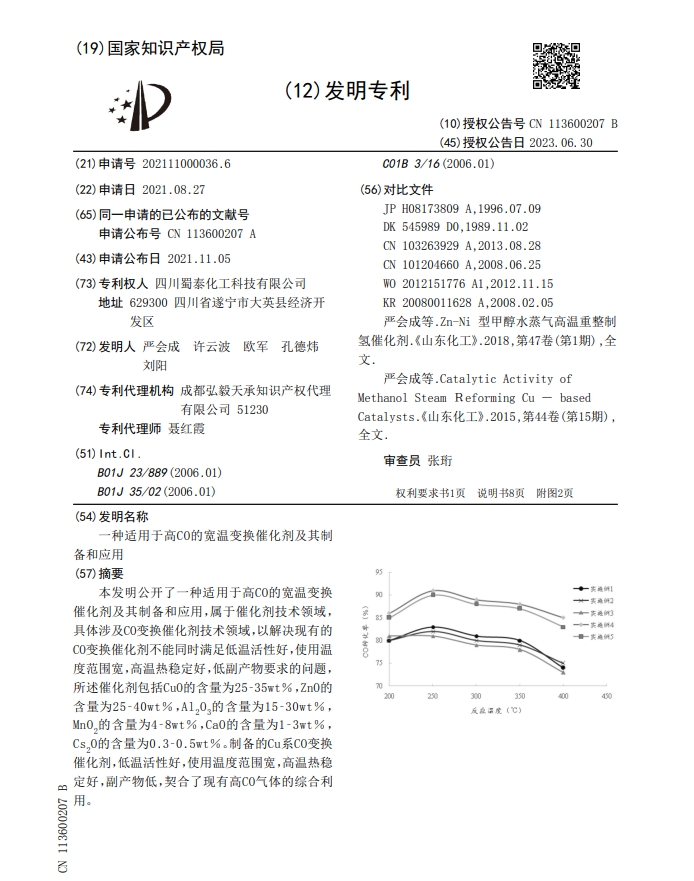 一种适用于高CO的宽温变换催化剂及其制备和应用