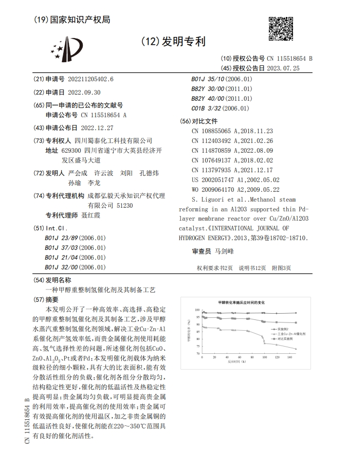 一种高效率、高选择、高稳定的甲醇重整制氢催化剂及其制备工艺