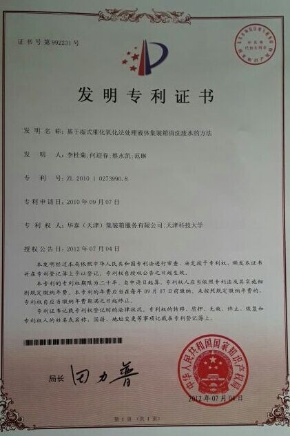 基于湿式催化氧化法处理液体集装箱清洗废水的专利