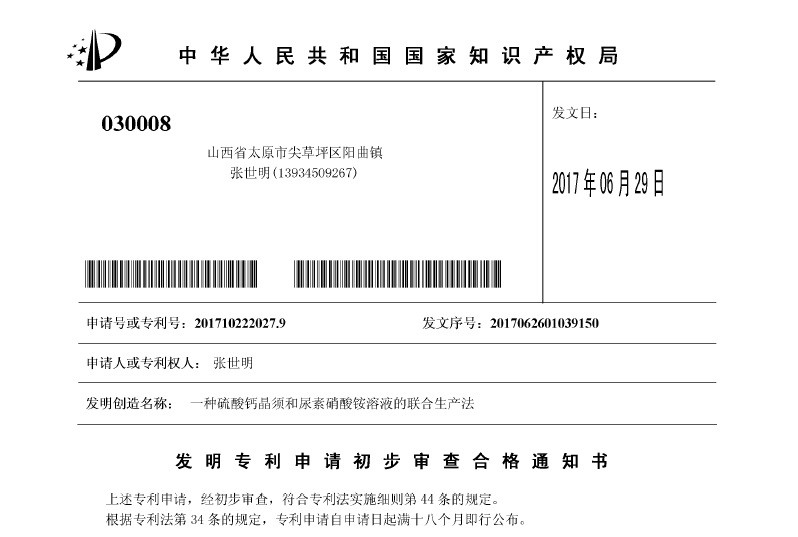 一种硫酸钙晶须(CSW)和尿素硝酸铵液体肥(UAN)的联合生产法