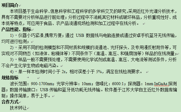 便携式近红外光谱仪开发项目