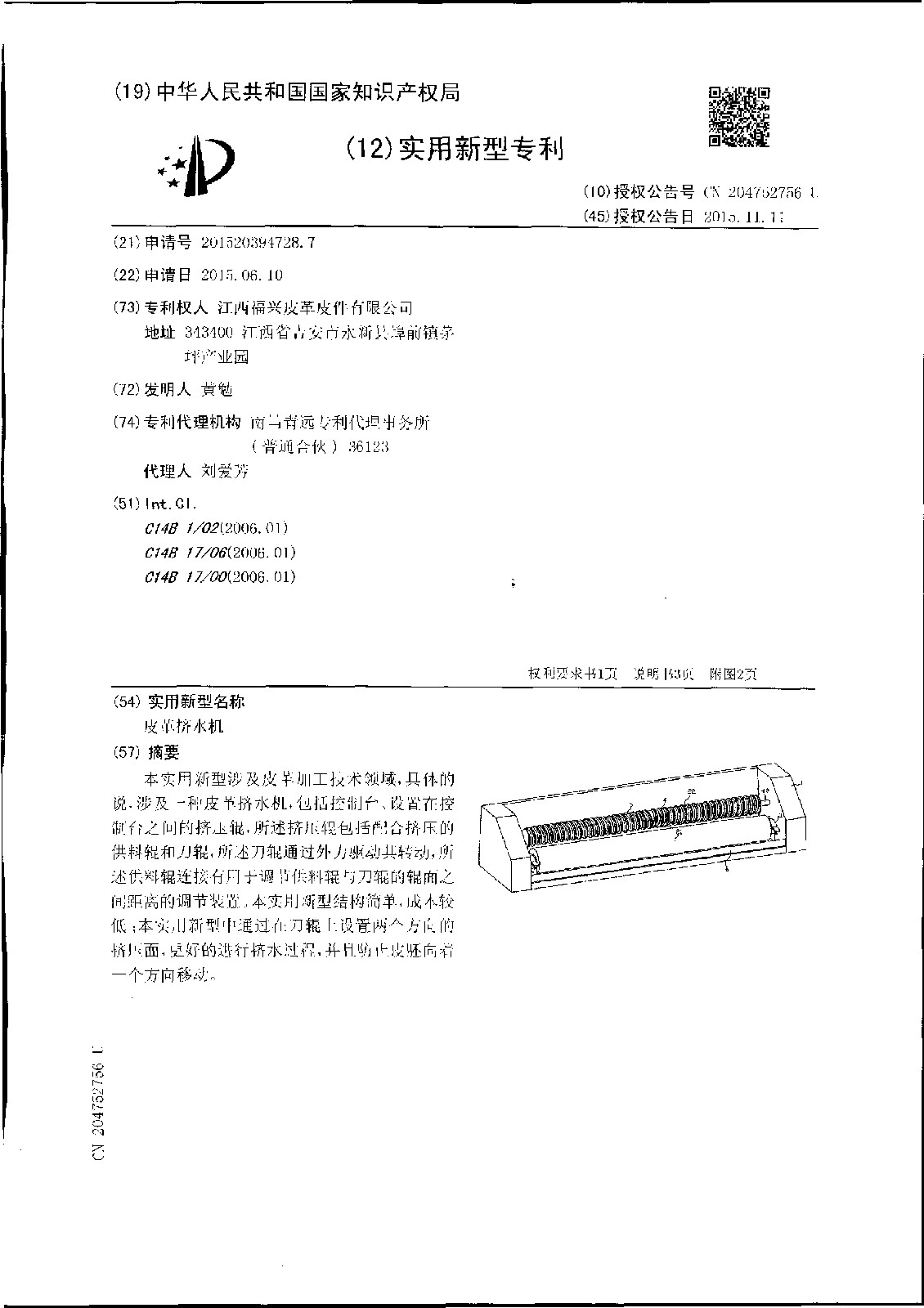 一种皮革挤水机