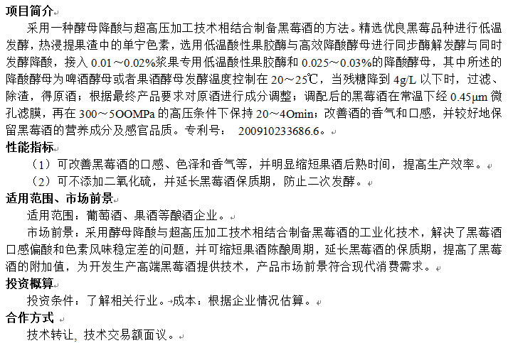 酵母降酸与超高压加工技术相结合制备黑莓酒