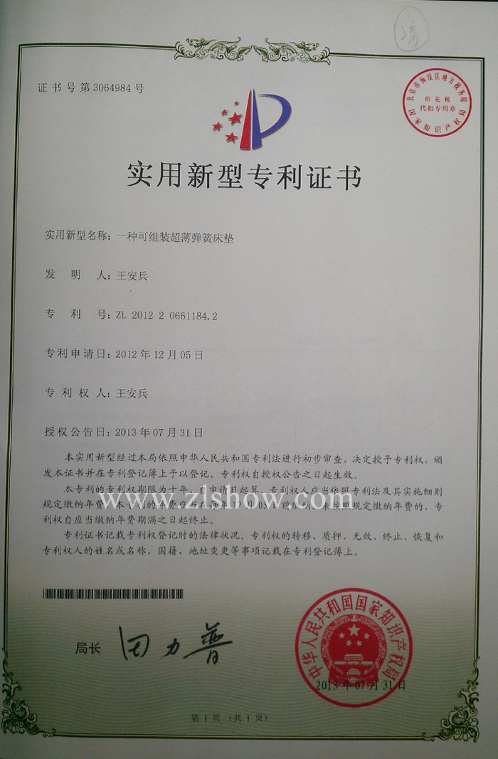 一种可组装超薄弹簧床垫