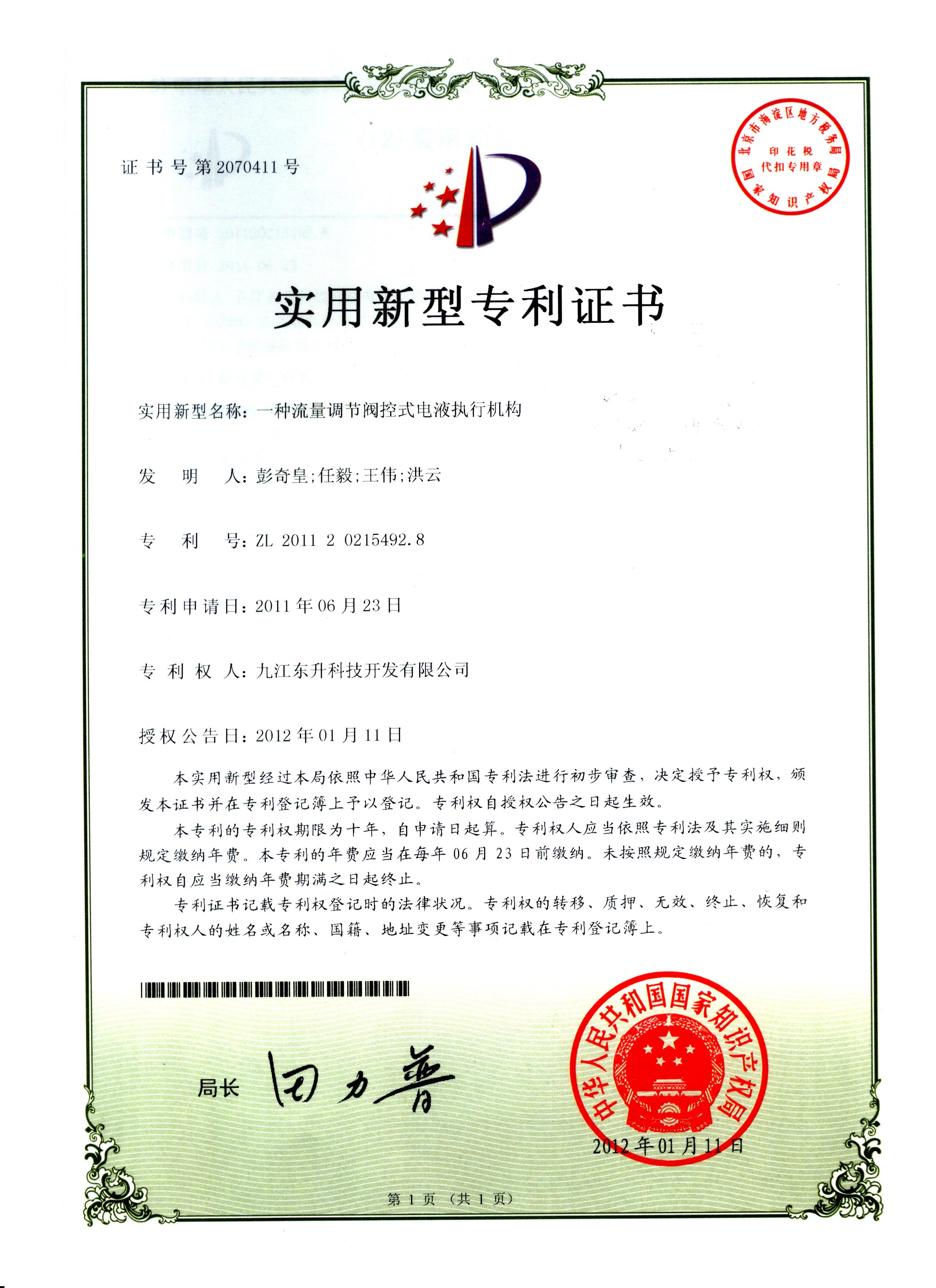 新型小型化电液执行机构