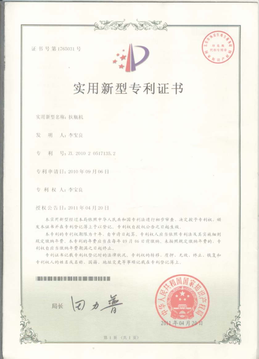 扶瓶机的技术转让、或寻求合作伙伴