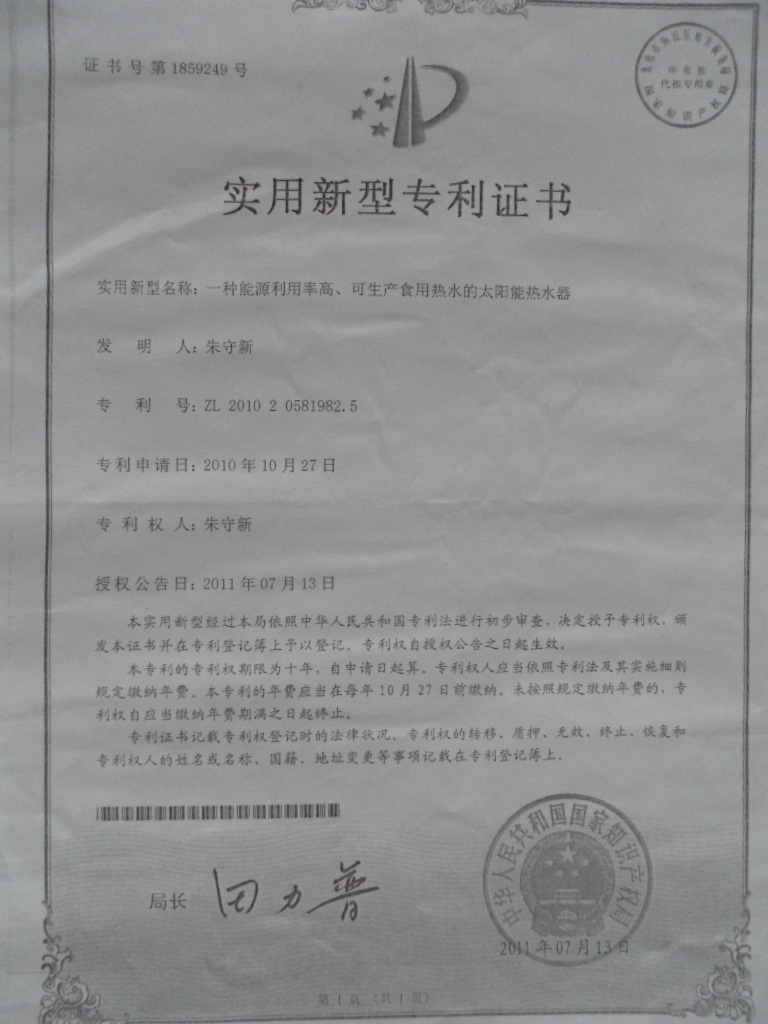 一种能源利用率高、可生产食用热水的太阳