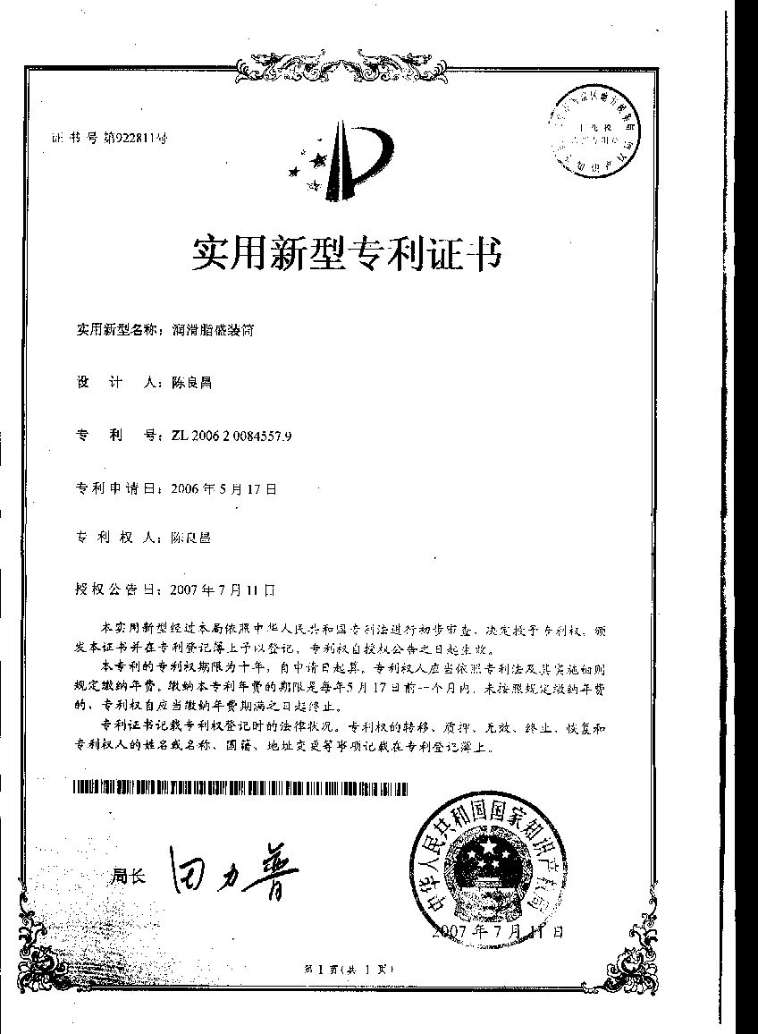 润滑脂盛装筒