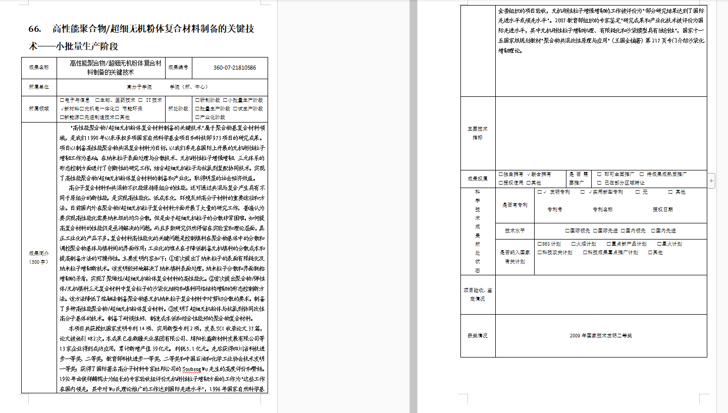 高性能聚合物/超细无机粉体复合材料制备的关键技术
