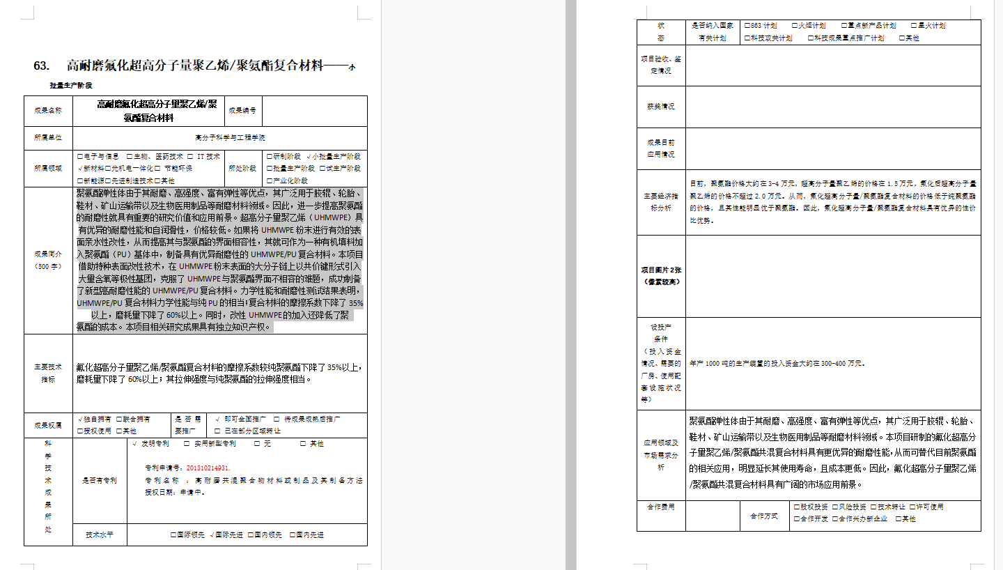 高耐磨氟化超高分子量聚乙烯/聚氨酯复合材料