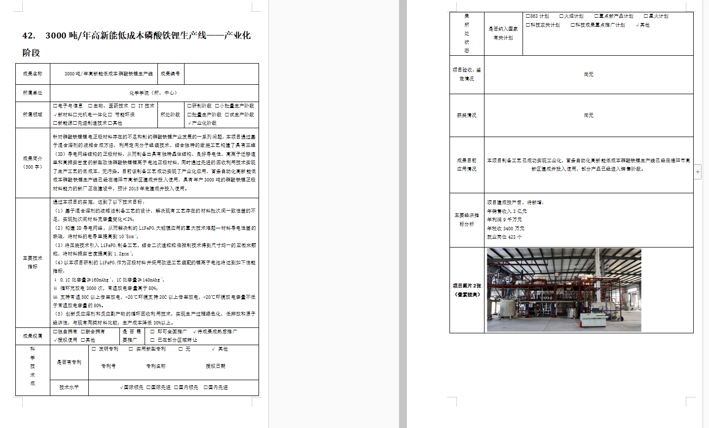 3000吨/年高新能低成本磷酸铁锂生产线