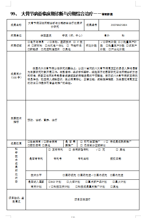 大骨节病亚临床期诊断与分期综合治疗效果评价研究