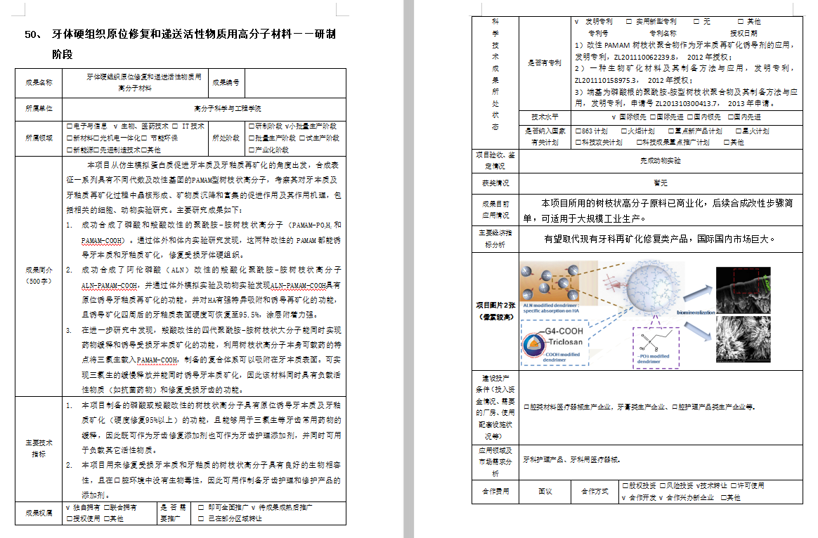 牙体硬组织原位修复和递送活性物质用高分子材料