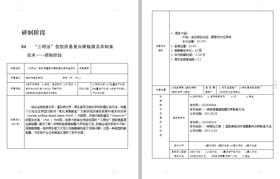 “三明治”型胶原基复合硬脑膜及其制备技术