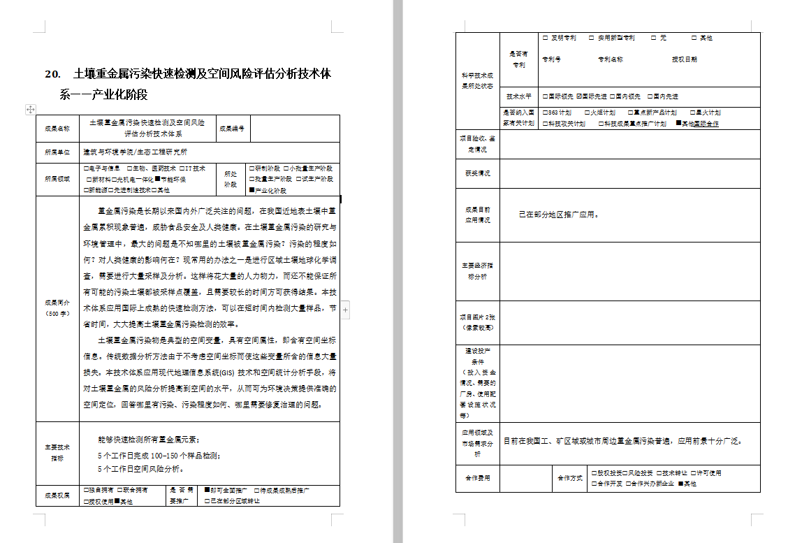 土壤重金属污染快速检测及空间风险 评估分析技术体系
