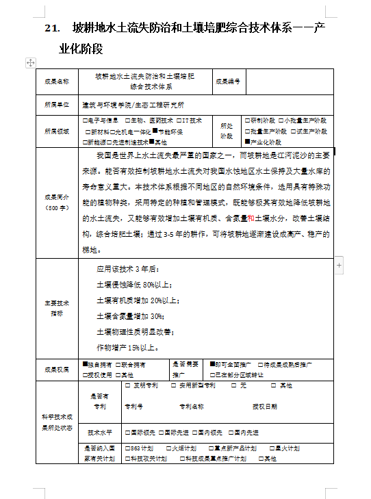 坡耕地水土流失防治和土壤培肥 综合技术体系