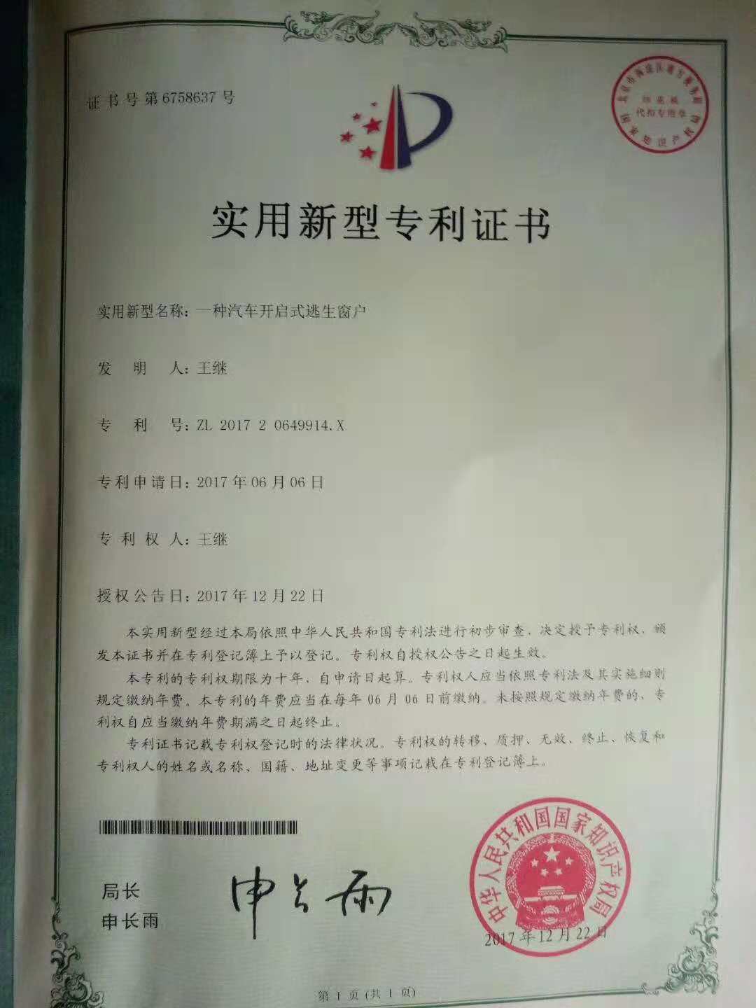 一种汽车开启式逃生窗户