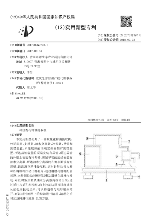 一种玫瑰花精油提取机