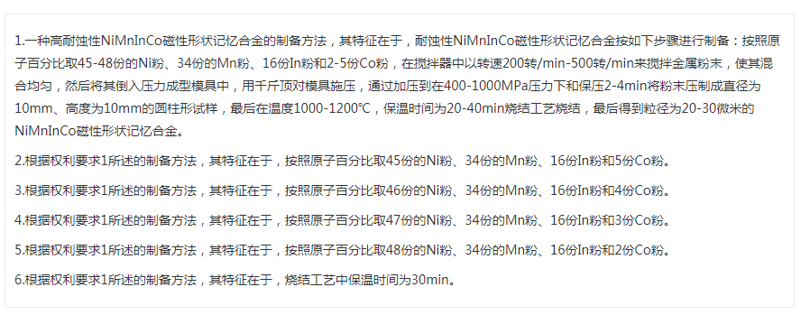 一种高耐蚀性NiMnInCo磁性形状记忆合金的制备方法