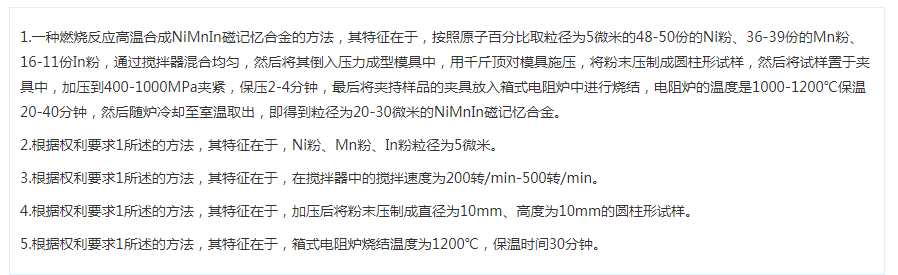 一种燃烧反应高温合成NiMnIn磁记忆合金的方法