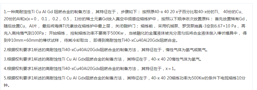 一种高耐蚀性TiCuAlGd阻燃合金的制备方法