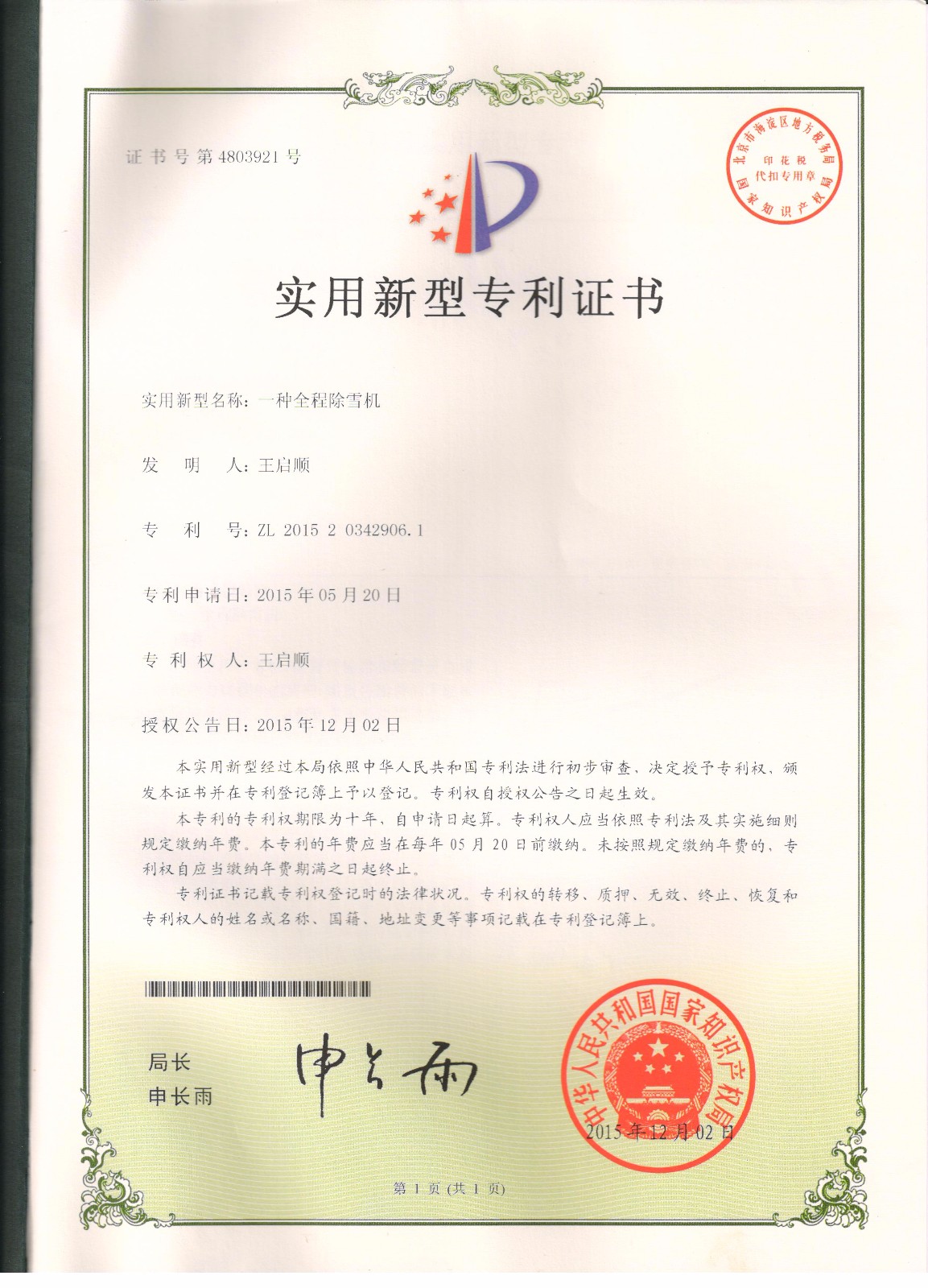 一种全程除雪机