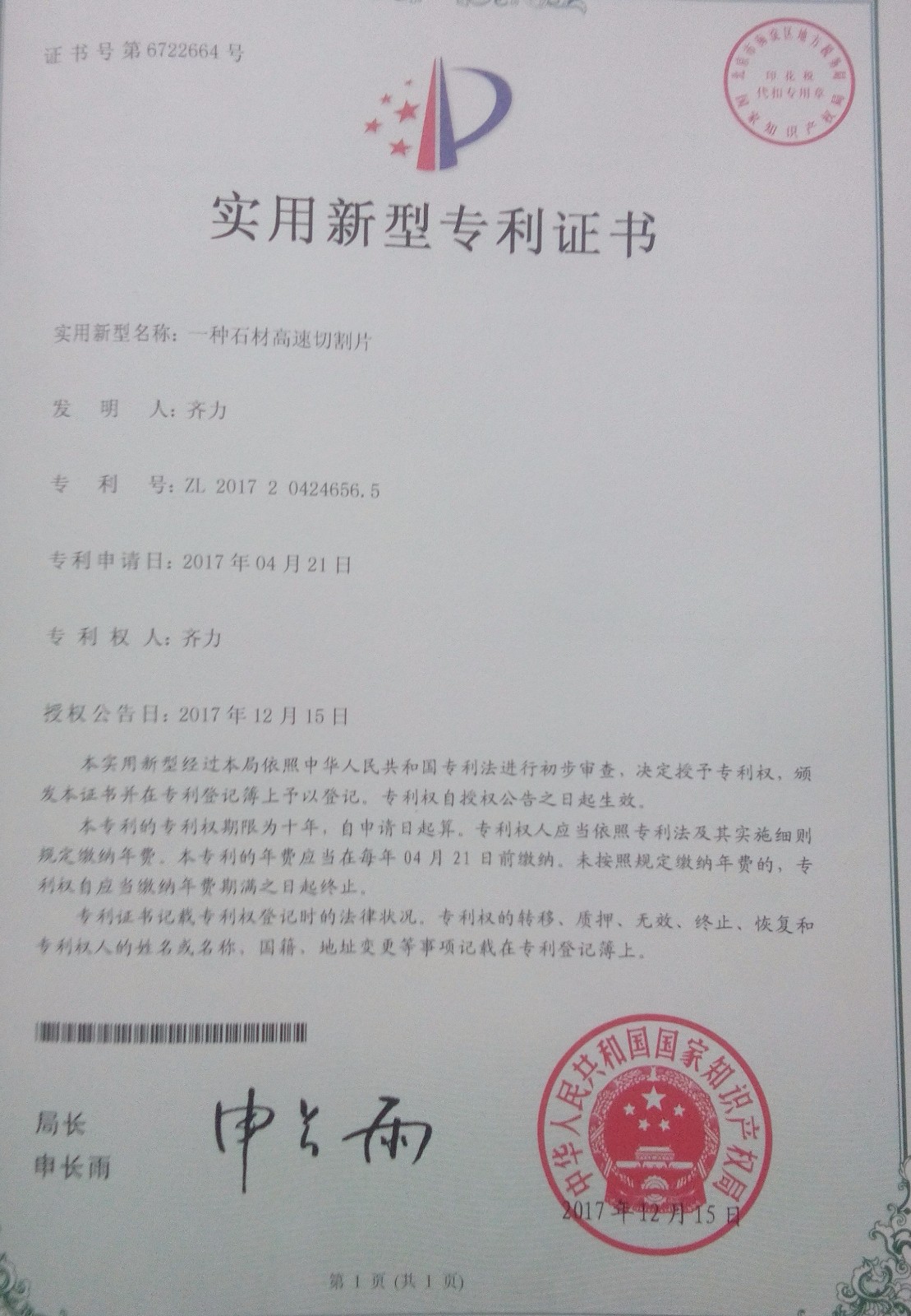 一种石材高速切割片