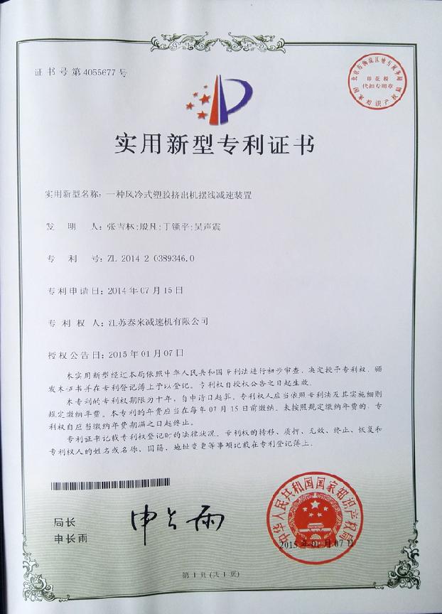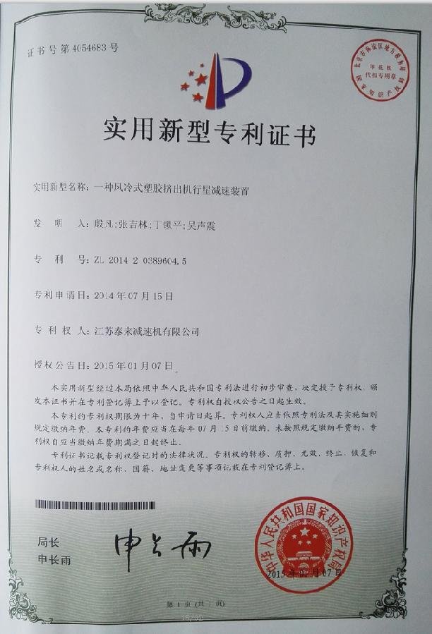 专利转让:一种风冷式塑胶挤出机行星减速装置