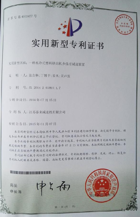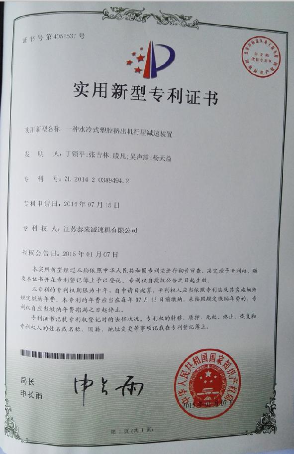 专利转让:一种水冷式塑胶挤出机行星减速装置