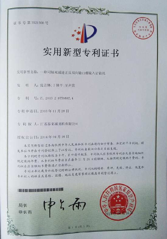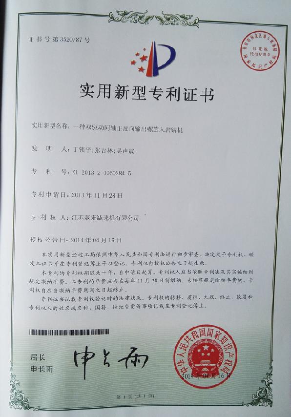 专利转让:一种同轴双减速正反双向输出螺旋入岩钻机