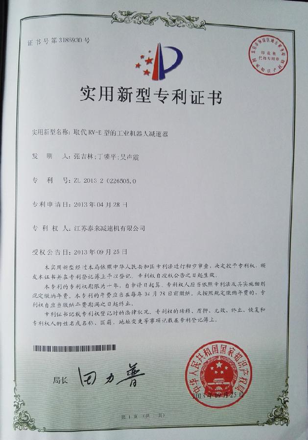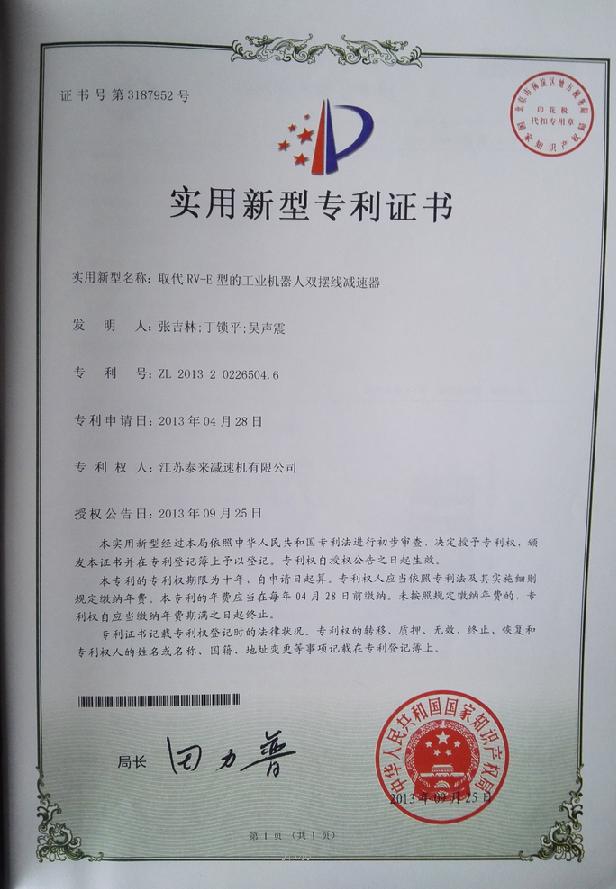 专利转让:取代RV-E型的工业机器人双摆线减速器