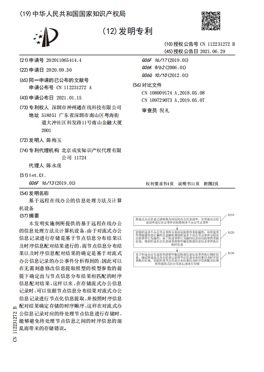 基于远程在线办公的信息处理方法及计算机设备